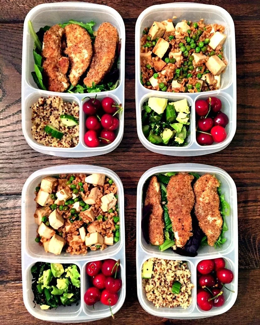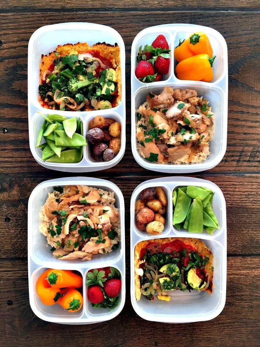 Get some fun containers. The three compartment containers allow me to test my creativity and make sure I have all the basics of my meals covered