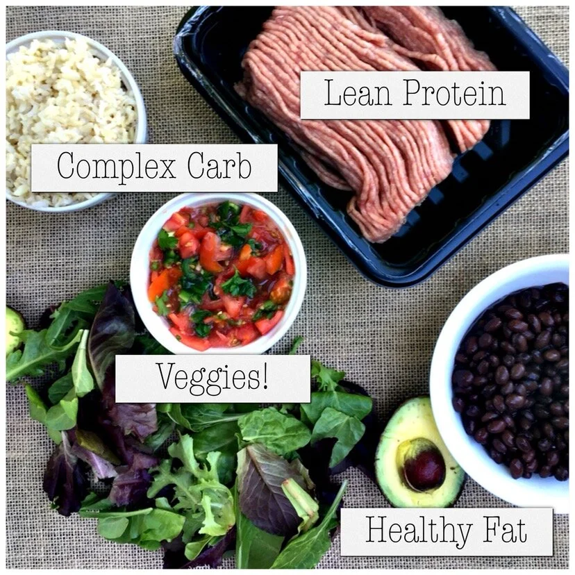 Think about macronutrient balance – pick a complex carb, a healthy fat and a lean protein and as many vegetables as you can stand!